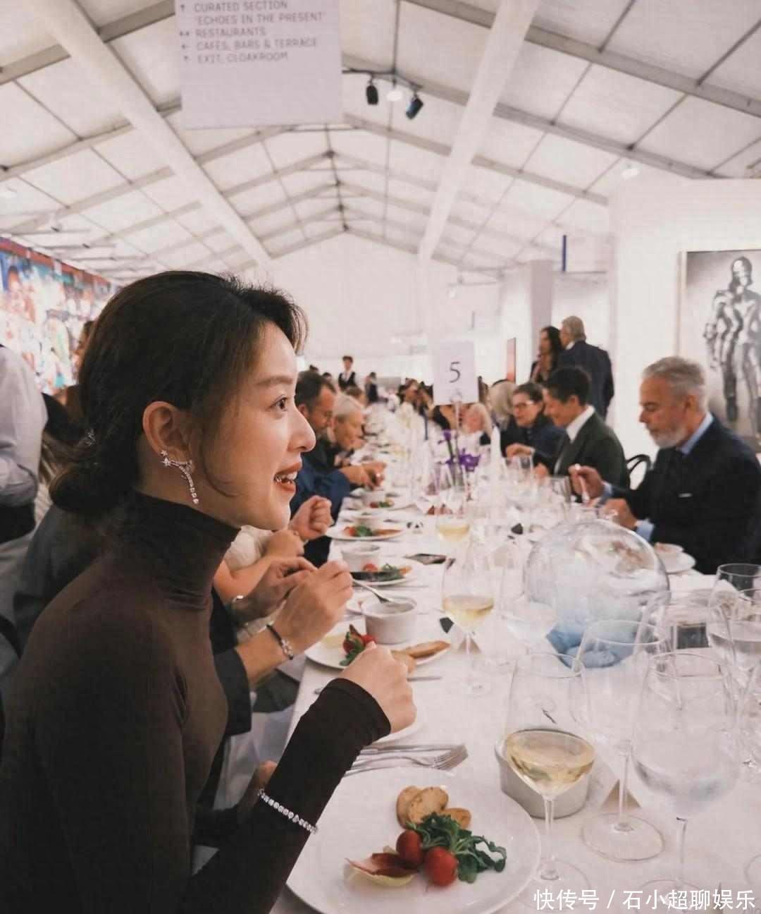 有意思的是她这次穿了件棕色针织上衣,看着像普通打底衫,可镜头一拉近,面料泛着点光,细看才觉出不一样,她配了同色的手链和耳环,整个人就显得不一般了,有网友发现她站的位置正好在一幅抽象画前面,身形和画里的线条凑在一起,竟也搭得上,这种搭配的小心思,倒挺像她平时的样子,不声不响,但就是有味道。